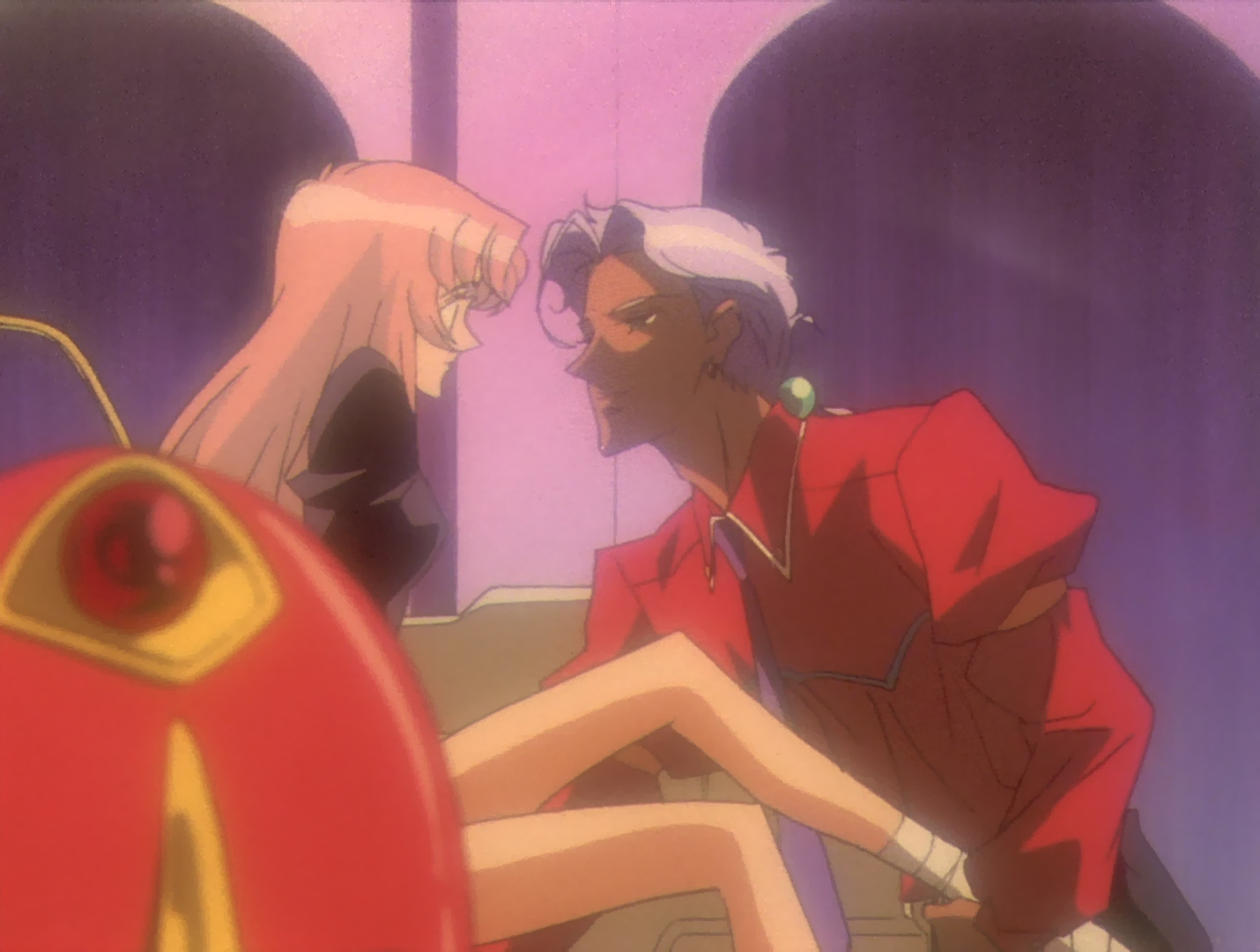 meter away from them. Varying amounts of intimacy are required for the varying degrees to which a person can cross this space, with consistent, prolonged physical contact being reserved largely for lovers, mothers, and the occasional best friend. Someone falling outside this short list moving in on one’s personal space is often taken as an attack, and while most people don’t respond violently, few accept it comfortably. Akio uses such invasions deliberately, though for their strength, they’re applied sparingly. Three such occasions are especially notable: his introduction to Wakaba, the moments before Utena’s kiss, and the meeting of him and his soon-to-be mother-in-law.