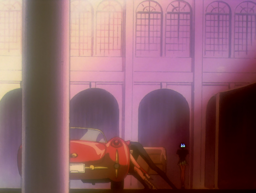 The way Akio's torso moves when he braces his hand on the car seat makes this look very much like slithering. Deliberate? You be the judge.