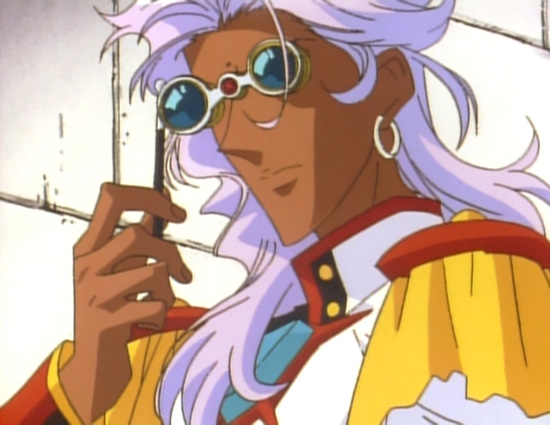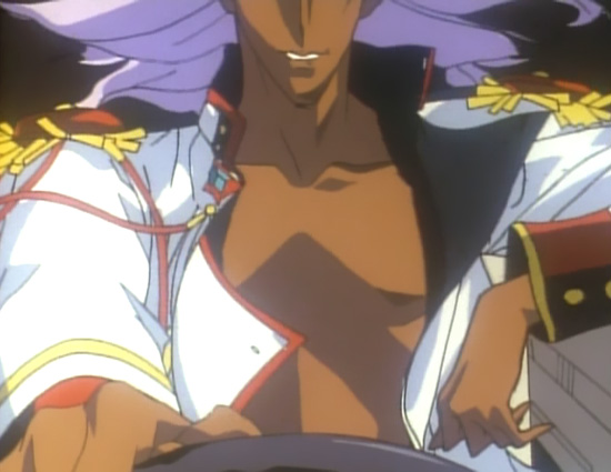After establishing that there's honesty in where his legs are pointing, it's definitely worth noting that he crosses them toward Touga. Not Utena. Not Anthy. Touga. But really, of the three of them, who would Akio be the most fond of? He has to watch too carefully what he does and says with Utena, and Anthy is ultimately rather unpleasant to have around because he can't quite control her. Touga doesn't present either of these problems. Touga can follow more than a third of what Akio says with minimal nursing along, and he's completely under his thumb. Definitely his favorite in that group. No mistake that Akio's most open and relaxed body language comes from the scenes he shares with Touga, where there's comparatively little deliberate control over how he moves. Akio's comfort with his surroundings (as well as his sexuality) is something he wants to impress on Touga. It works out well for him that that comfort is genuine and he doesn't need to do anything but what he'd normally do. |