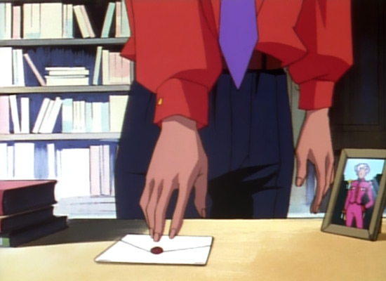 As for when he pockets his hands, usually a person who feels compelled to hide their hands is symbolically hiding something else, and it’s no mistake Akio most frequently does this around Utena. One exception is right at the end of episode 25, where he’s angry and in his ‘calm’ has placed his hands ‘casually’ in his pockets. A reaction he could easily control but expresses specifically because he wants Anthy to know he’s angry without doing something so obvious as throwing a fit.